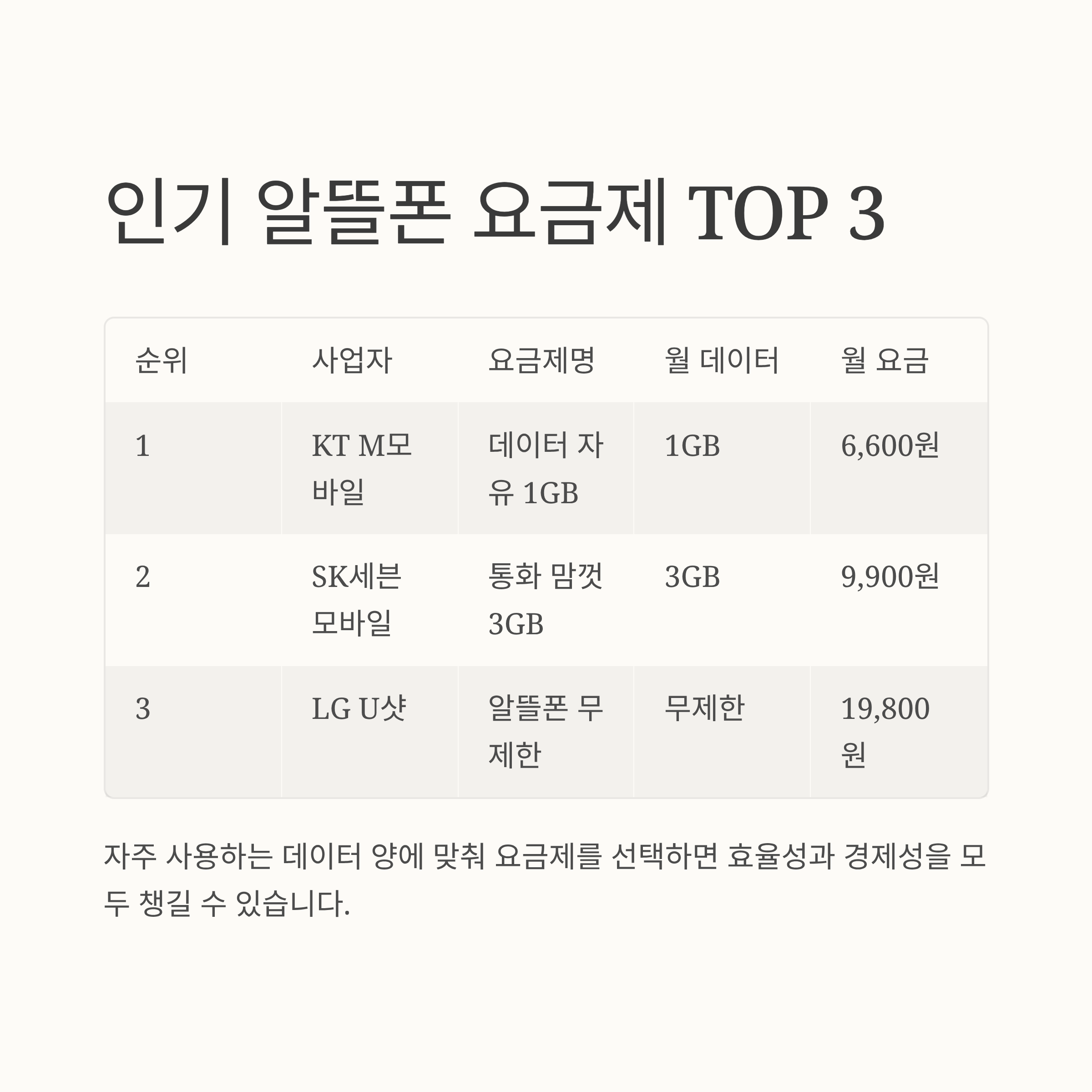 실사용자가 선택한 알뜰폰 요금제 TOP 3