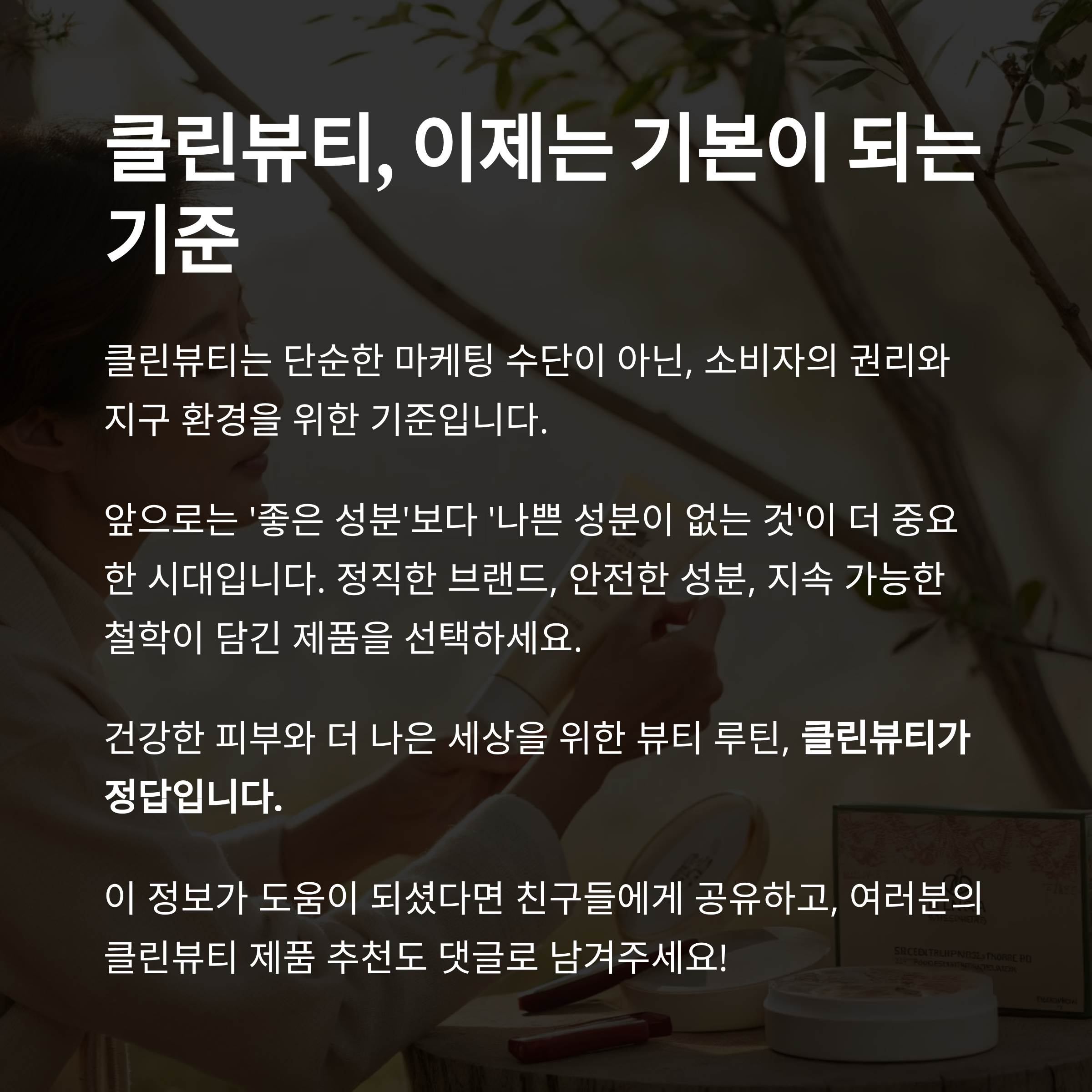 "클린뷰티 시장은 단순한 유행이 아닌, 소비자의 선택 기준이 되고 있습니다."