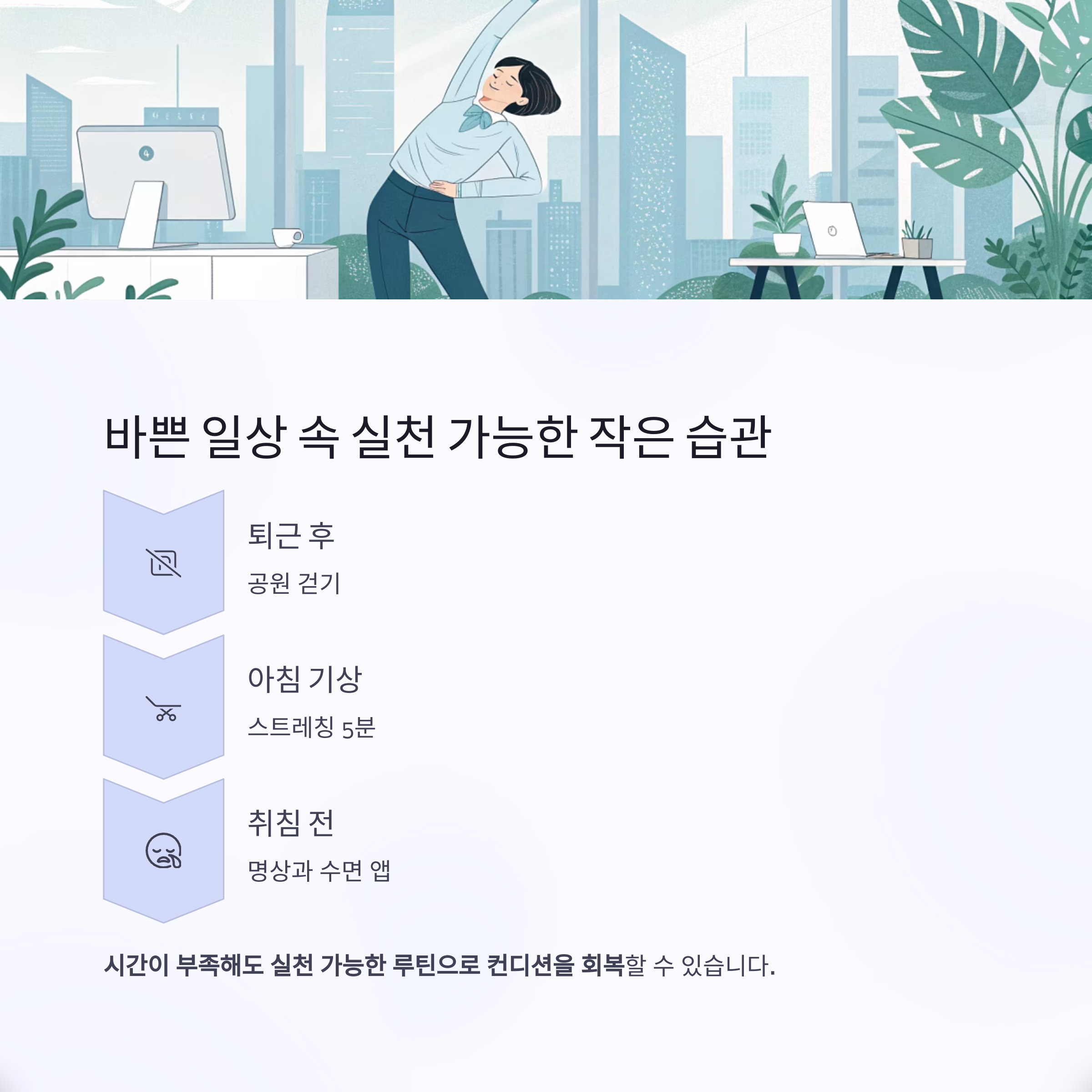 시간이 부족해도 실천 가능한 루틴을 통해 컨디션을 회복할 수 있습니다