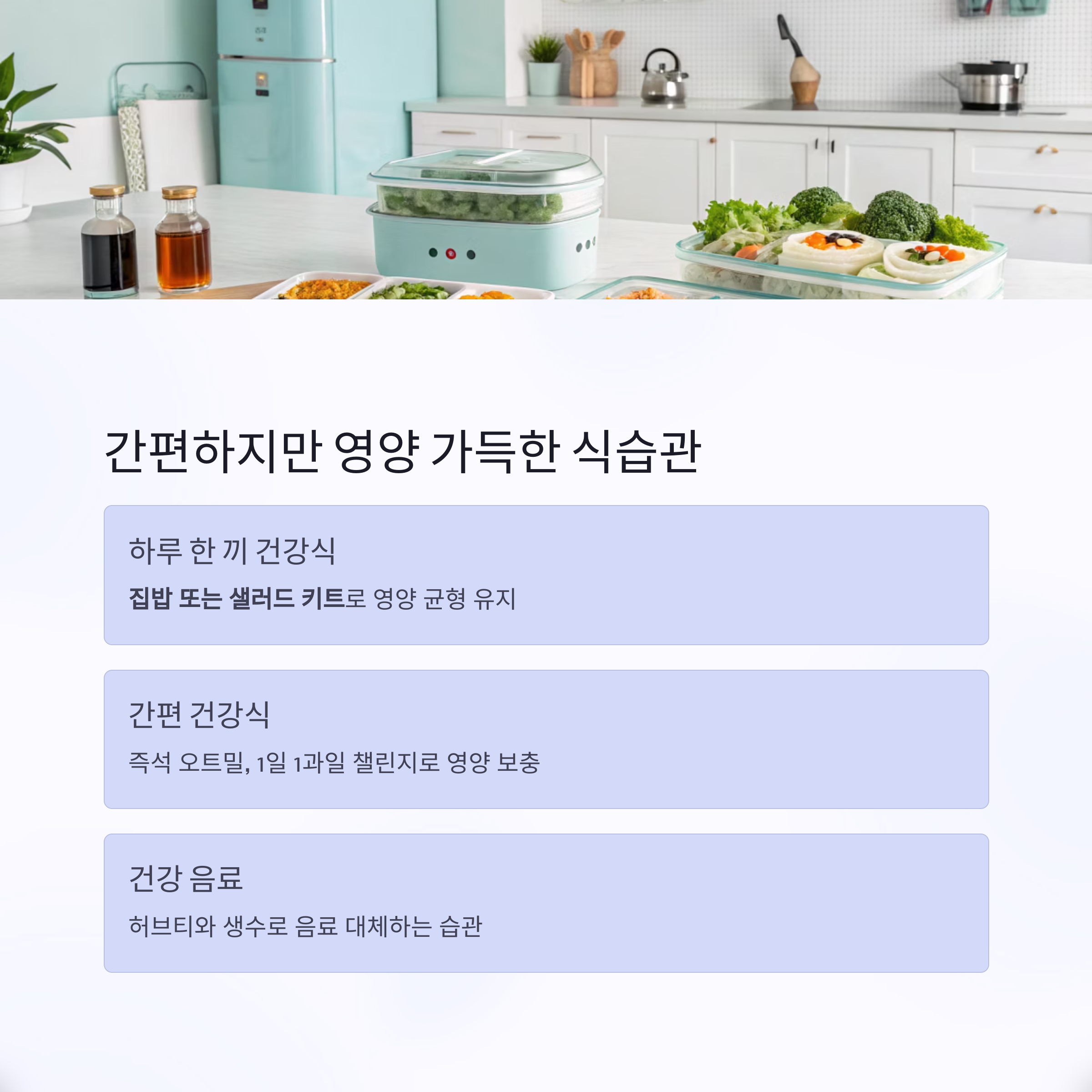 즉석 오트밀, 1일 1과일 챌린지, 허브티와 생수로 음료를 대체하는 습관이