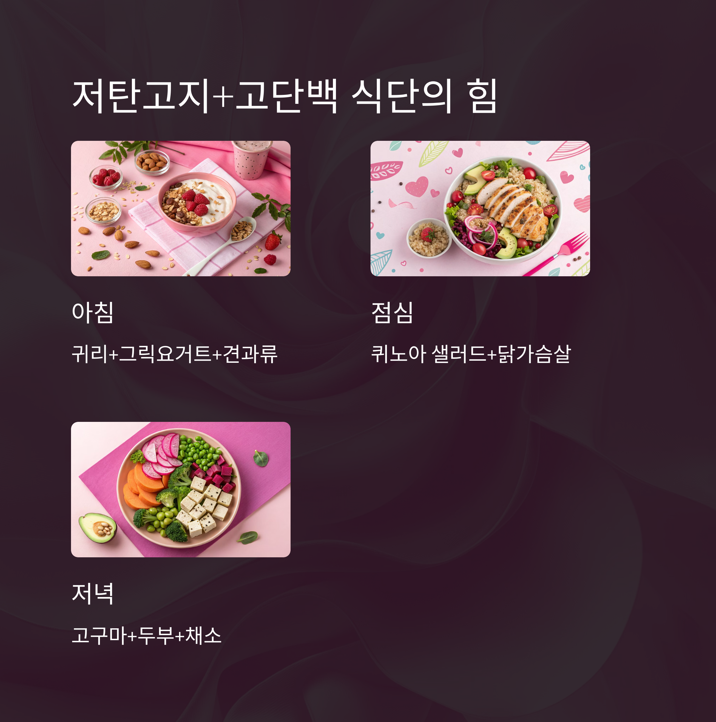 고구마+두부+채소(저녁) 구성만 따라도 효과는 즉시 나타납니다.