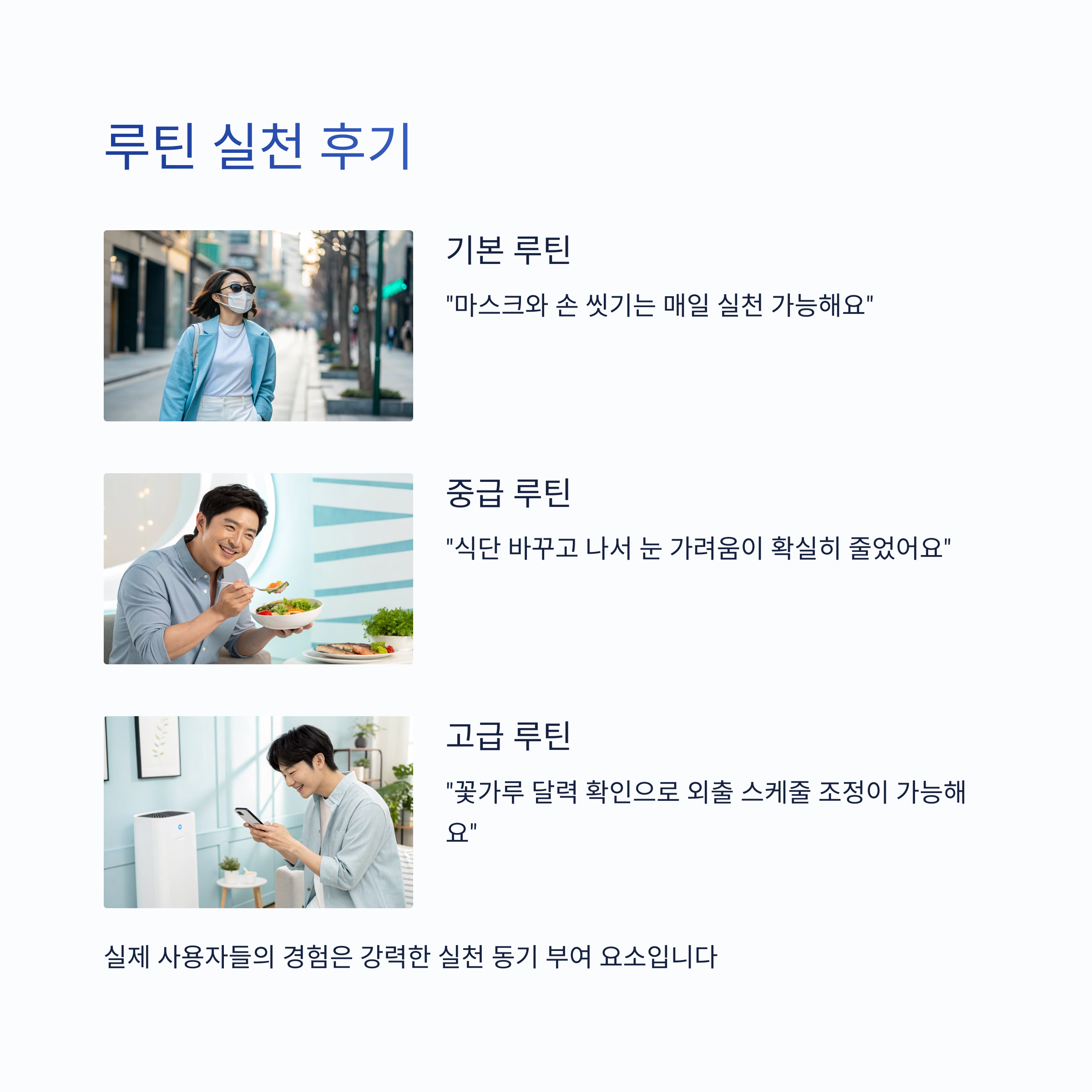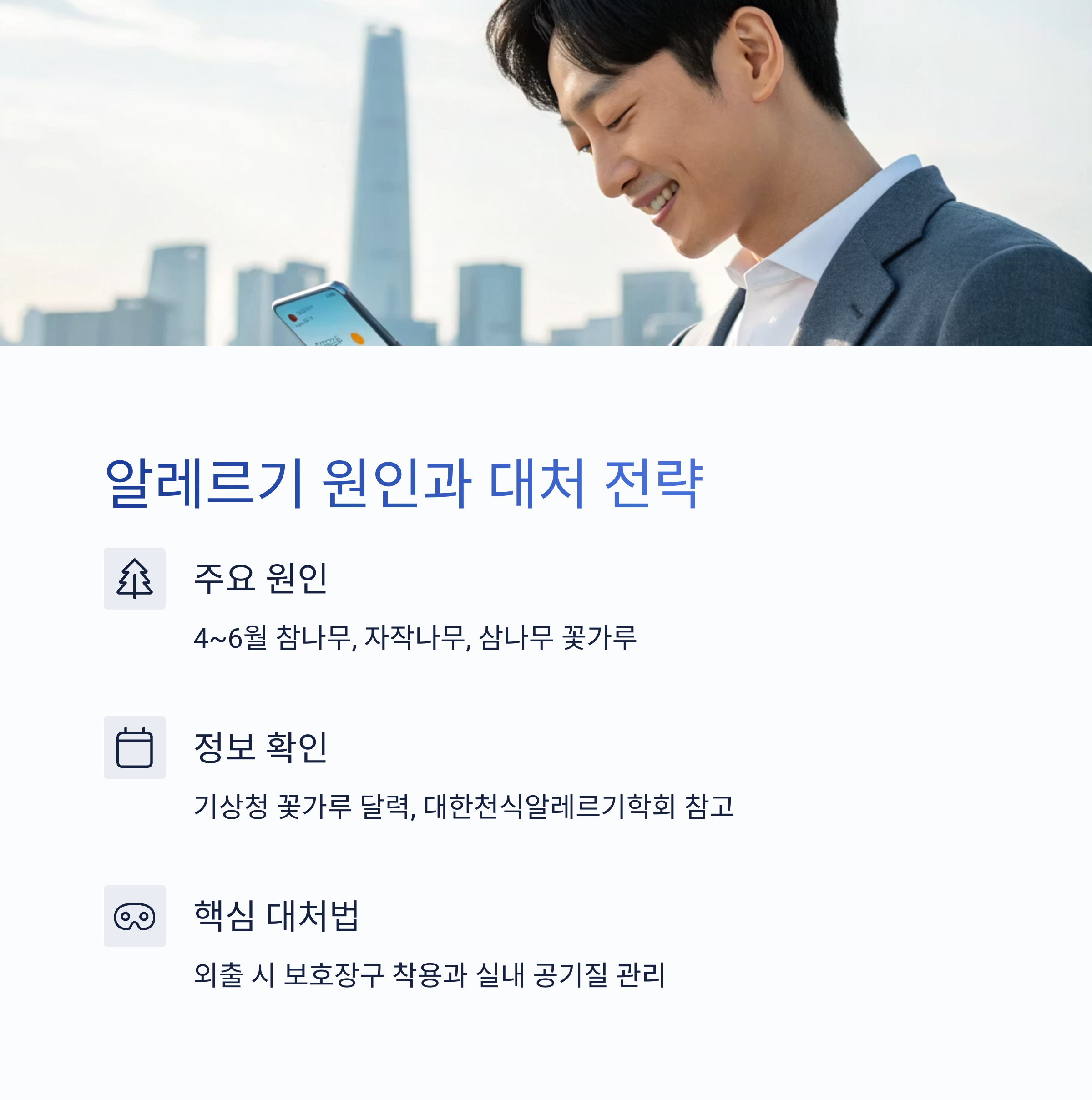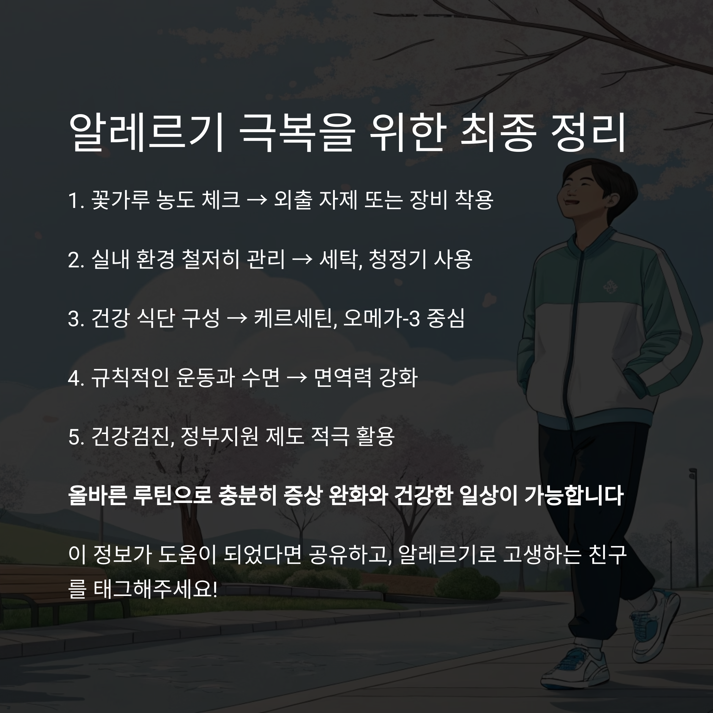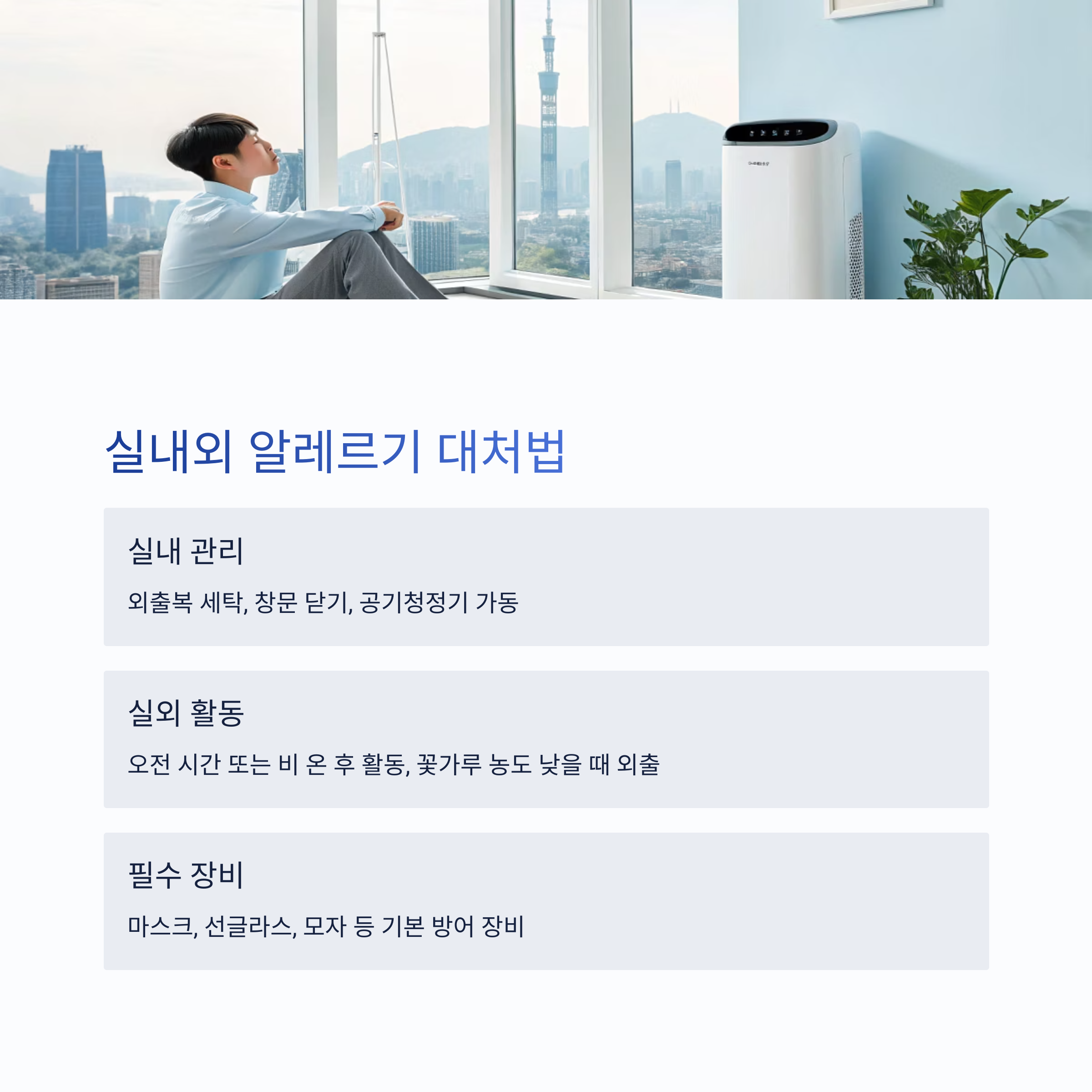 - 꽃가루 농도 체크 → 외출 자제 또는 장비 착용