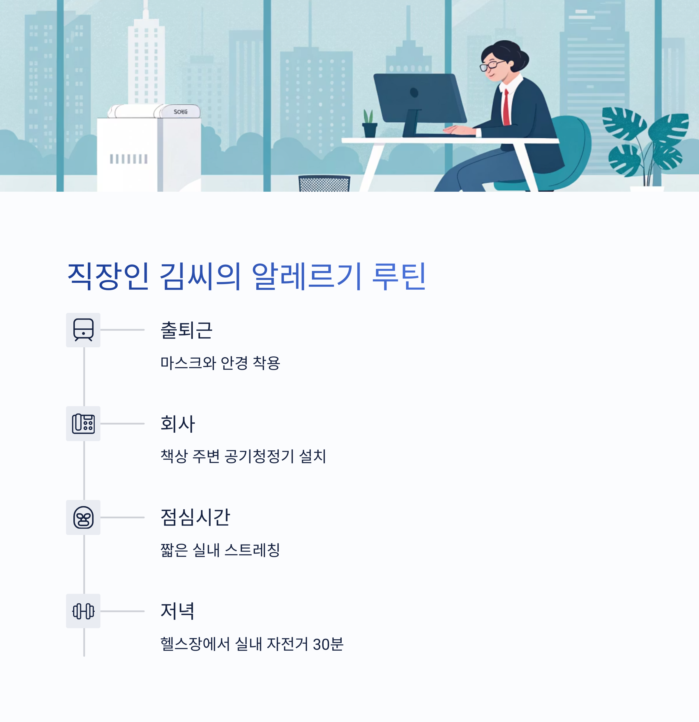 회사에서는 책상 주변에 공기청정기를 설치해 꽃가루 유입을 최소화합니다.