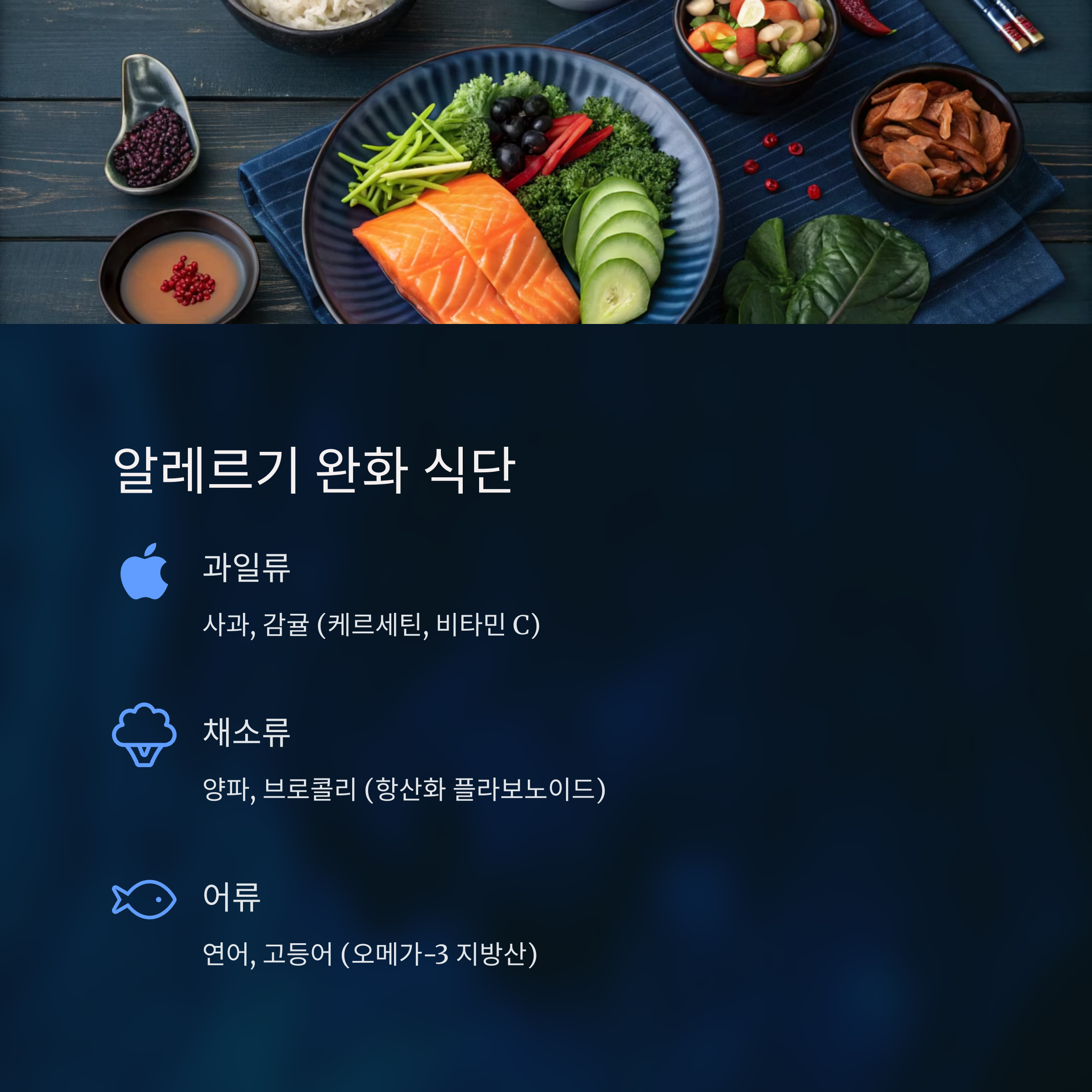 알레르기 완화에 도움을 주는 항염 식품은 다음과 같습니다