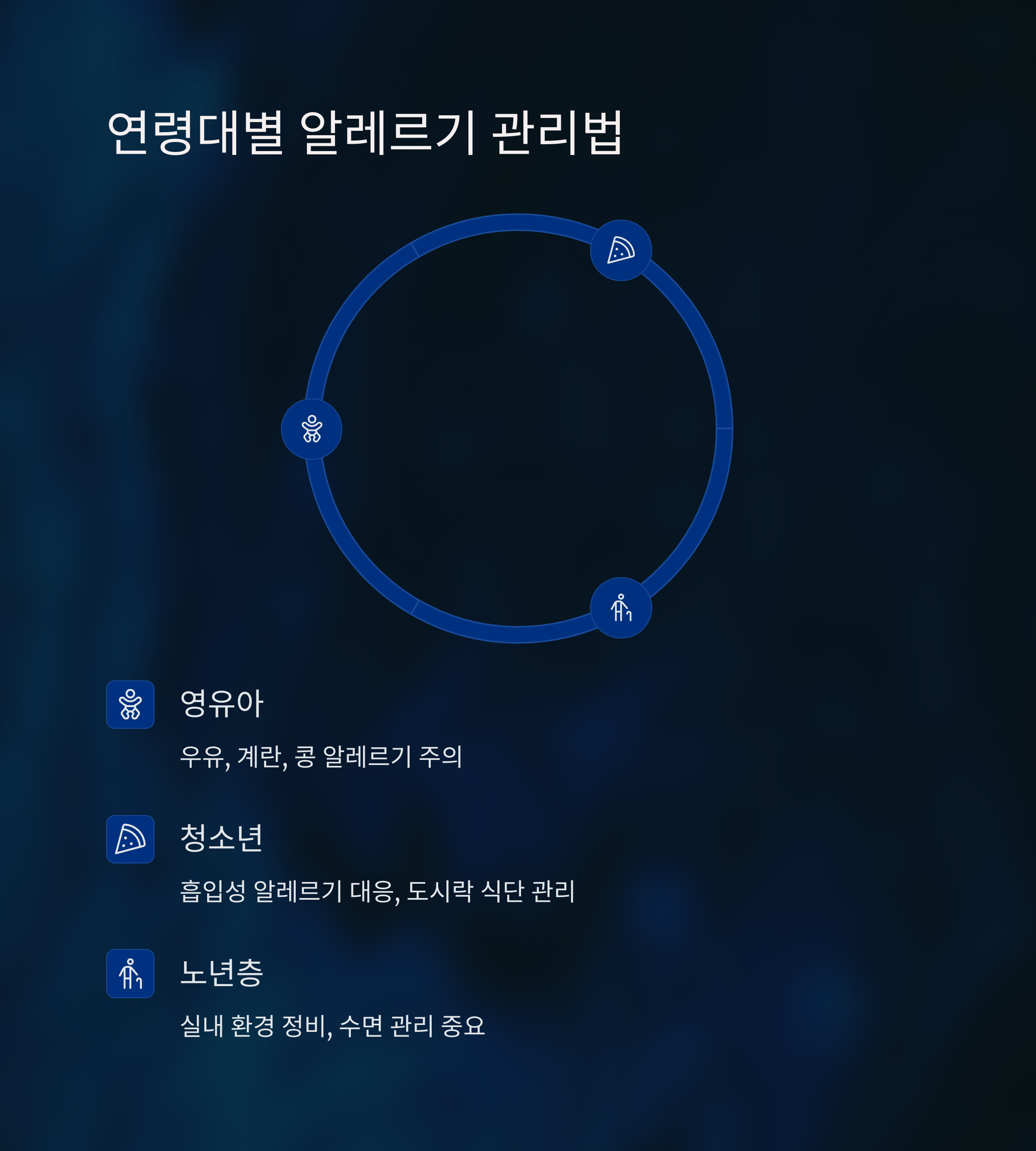- 청소년은 운동량이 많아 흡입성 알레르기 대응력이 중요하며