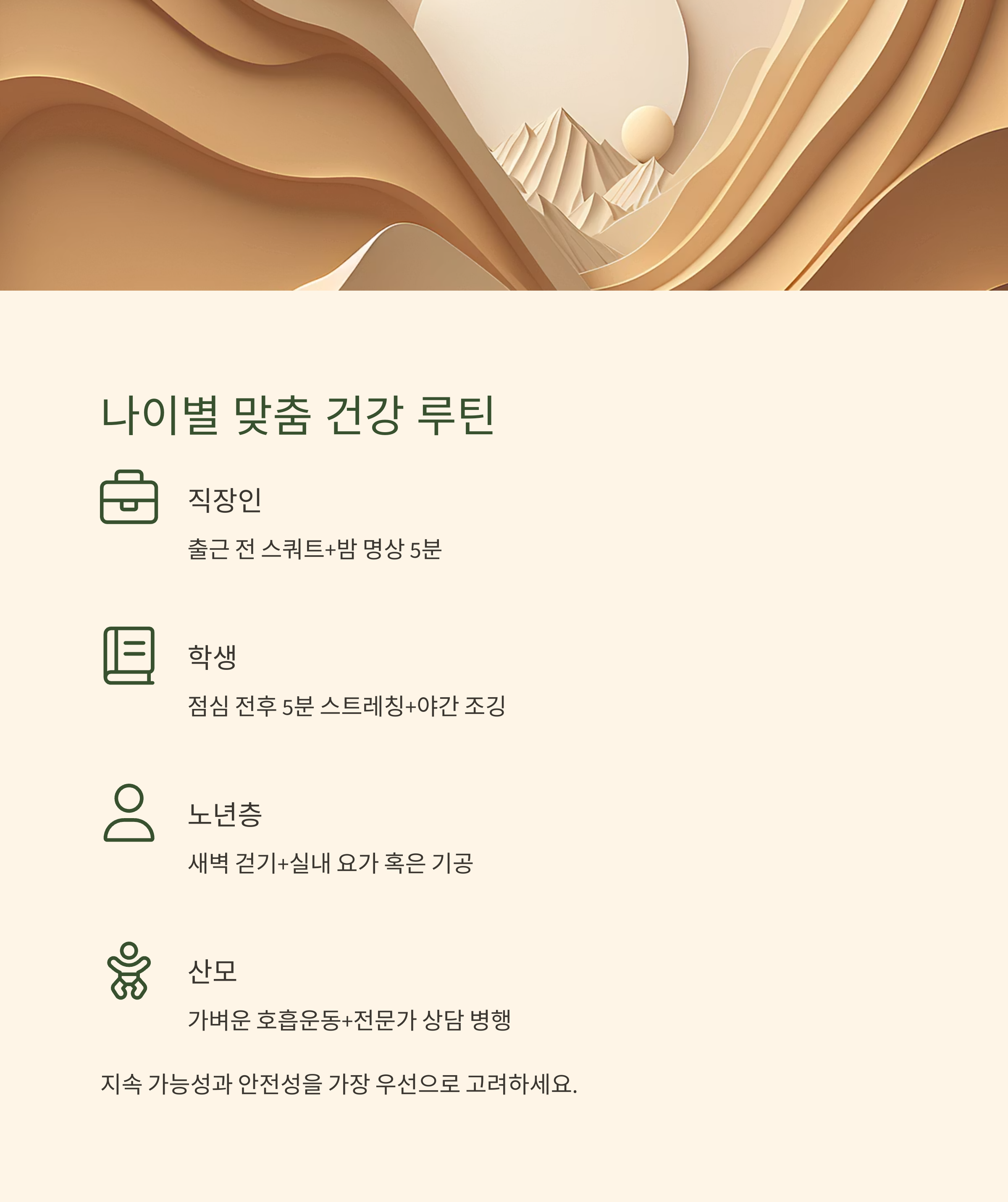| 직장인 | 출근 전 스쿼트+밤 명상 5분 |