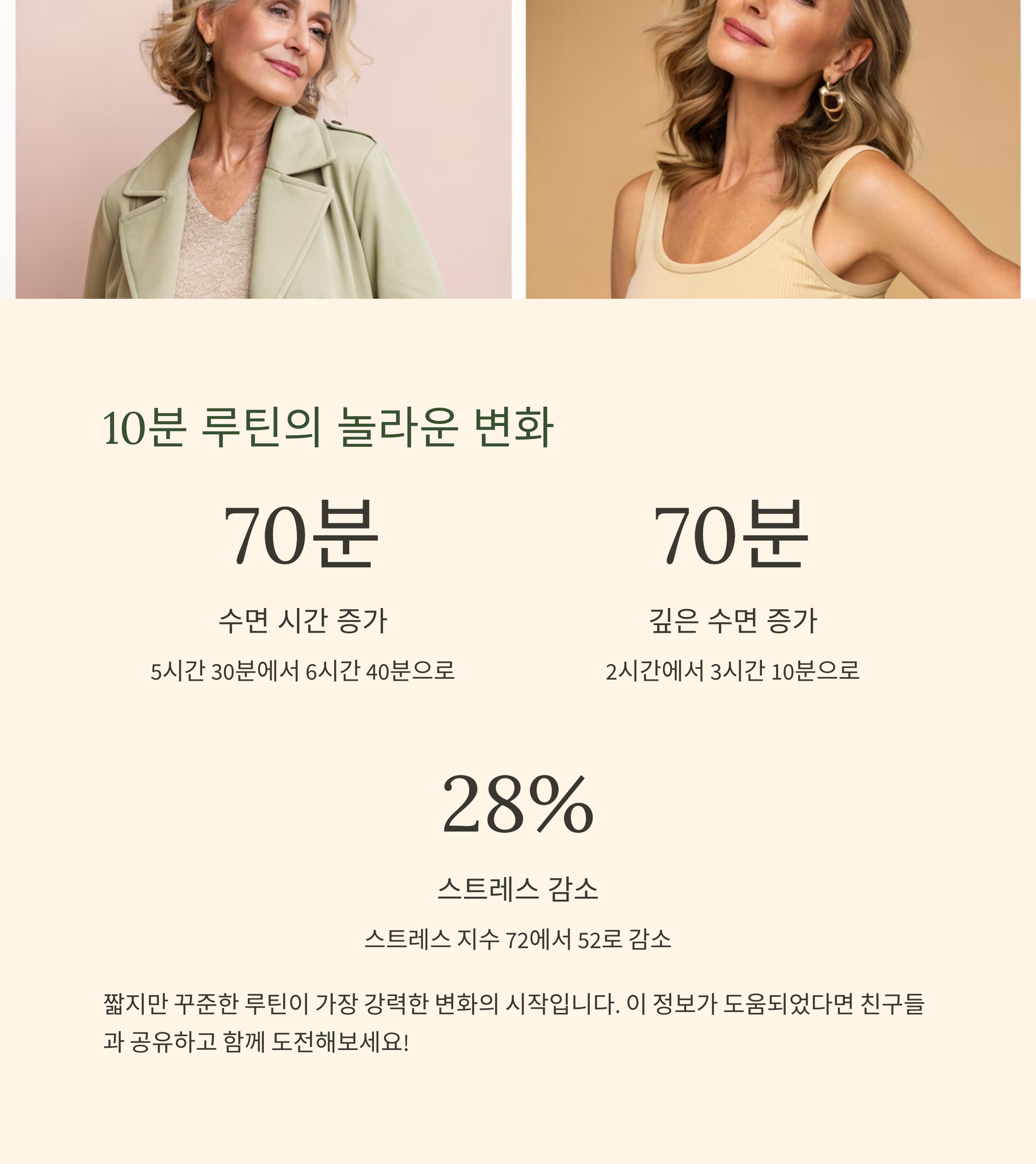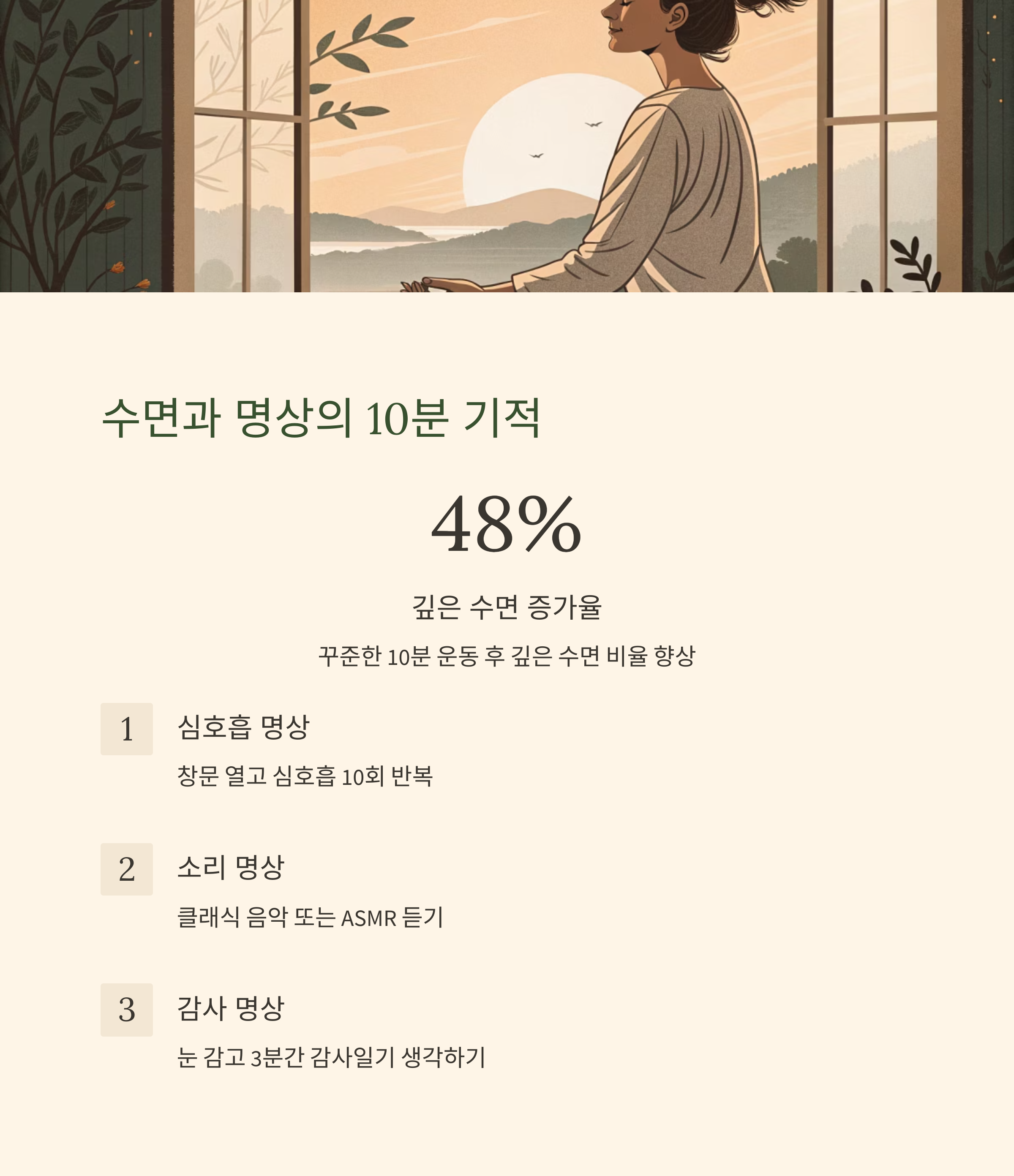 꾸준한 10분 운동 후 깊은 수면 비율이 48%까지 증가했습니다.
