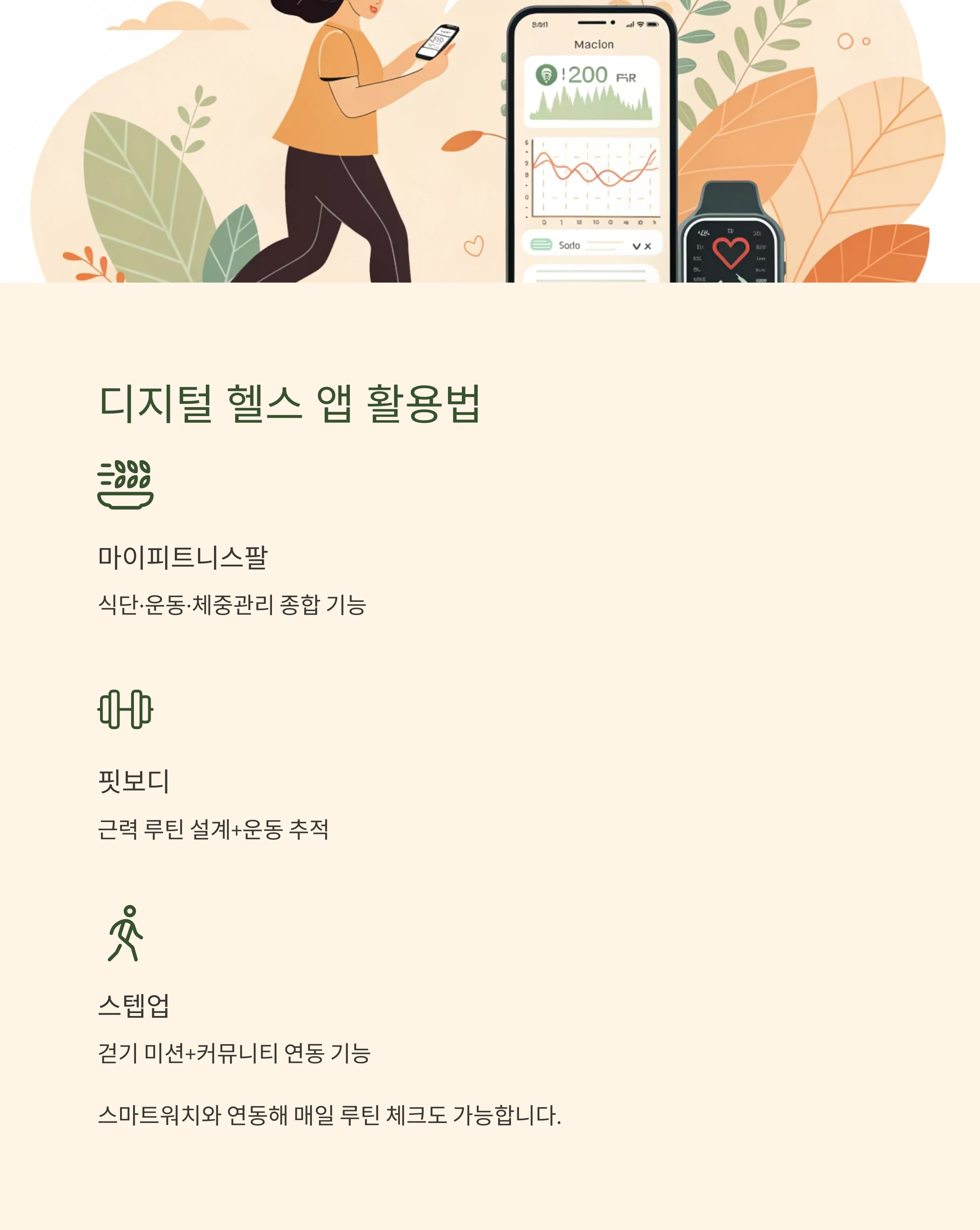 특히 2025년형 건강 앱은 AI 기반으로 개인 맞춤 루틴을 제안하며,