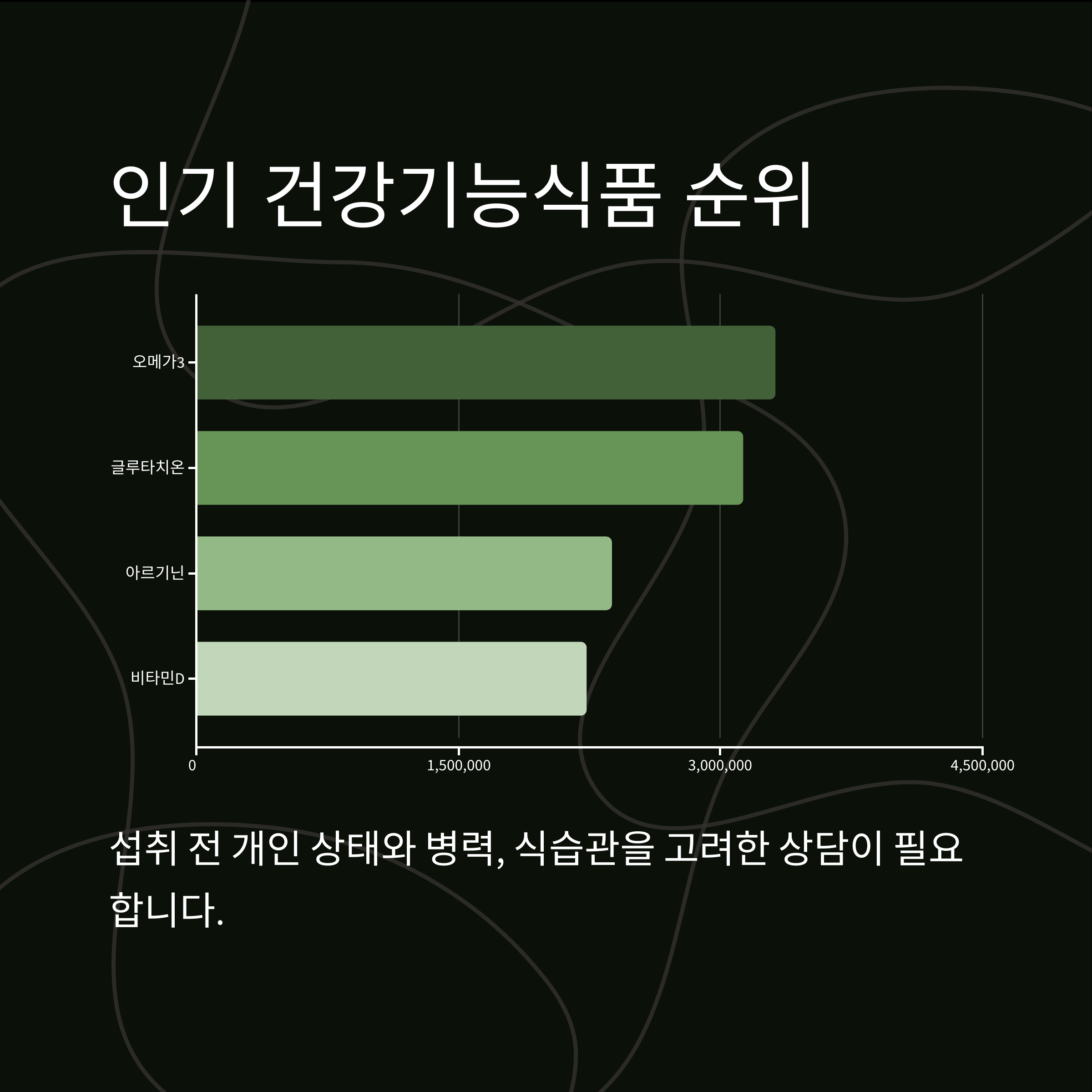 2025년 가장 많이 검색된 기능성 영양제는 아래와 같습니다.