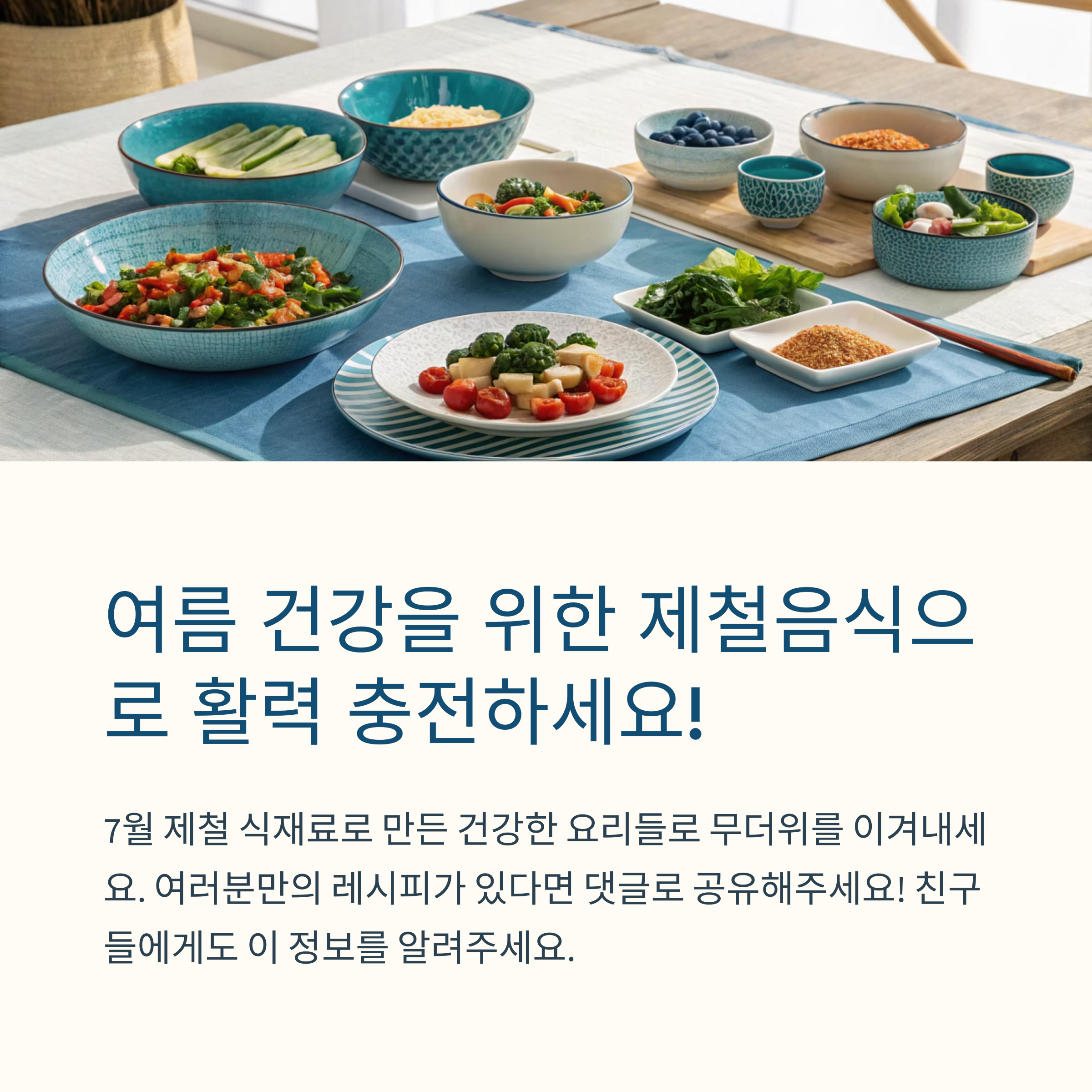 7월 제철 식재료는 신선함과 영양이 가득할 뿐만 아니라 맛까지 좋아 여름철 밥상에 제격입니다.