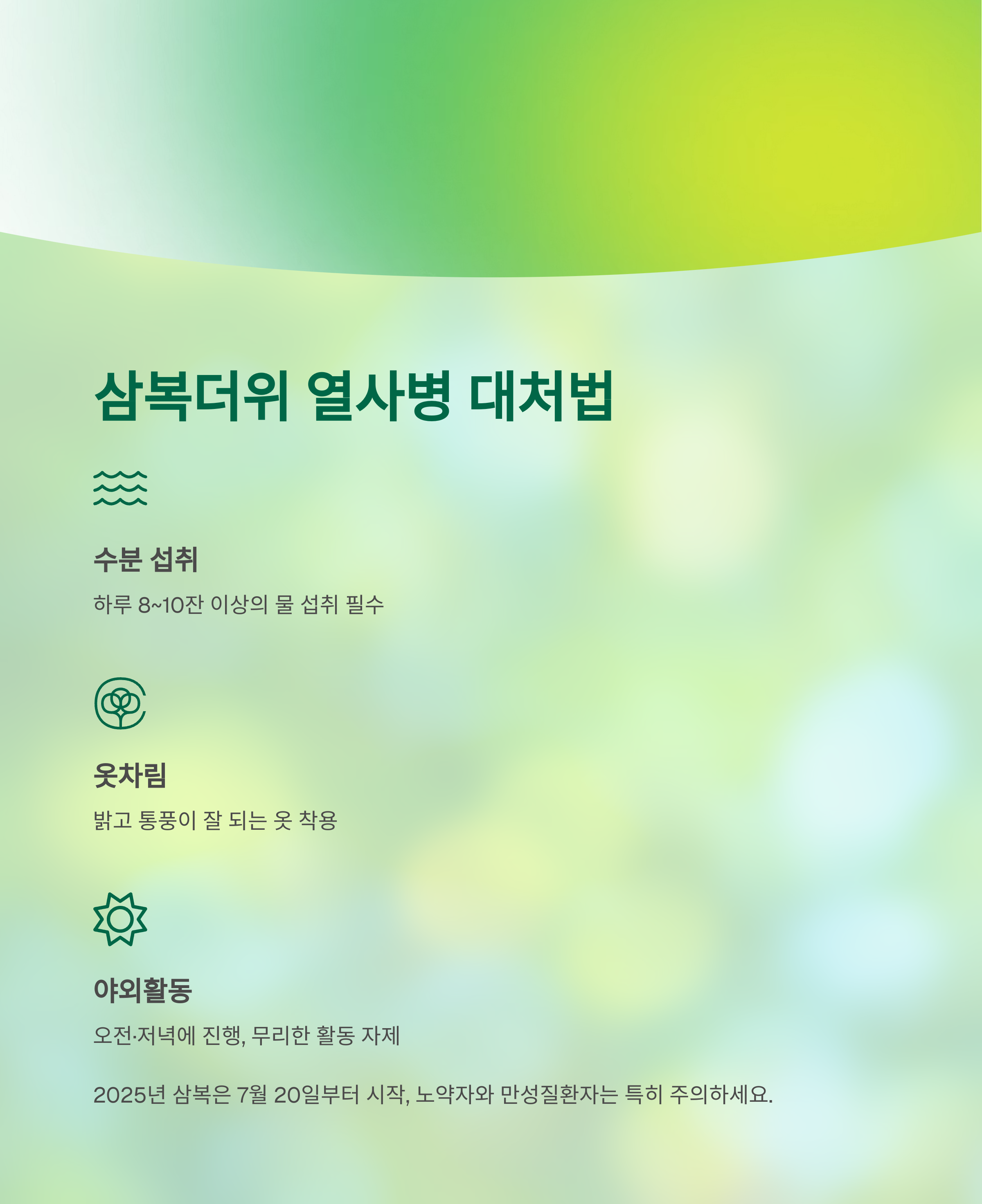 7월은 기후적으로도, 생활환경적으로도 건강에 가장 많은 위협이 몰리는 시기입니다.