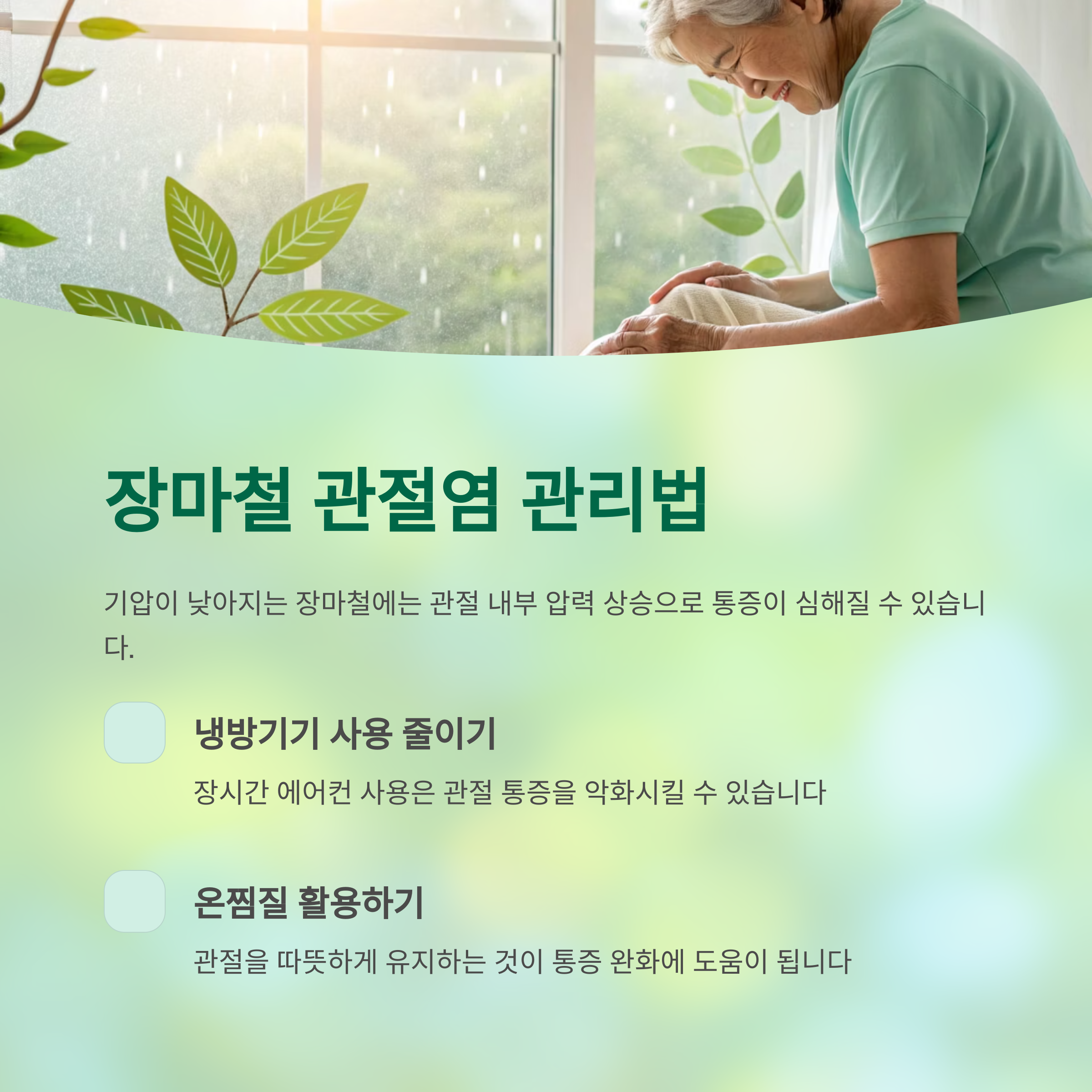 장마철 관절염, 기압 변화로 통증 심해질 수 있습니다