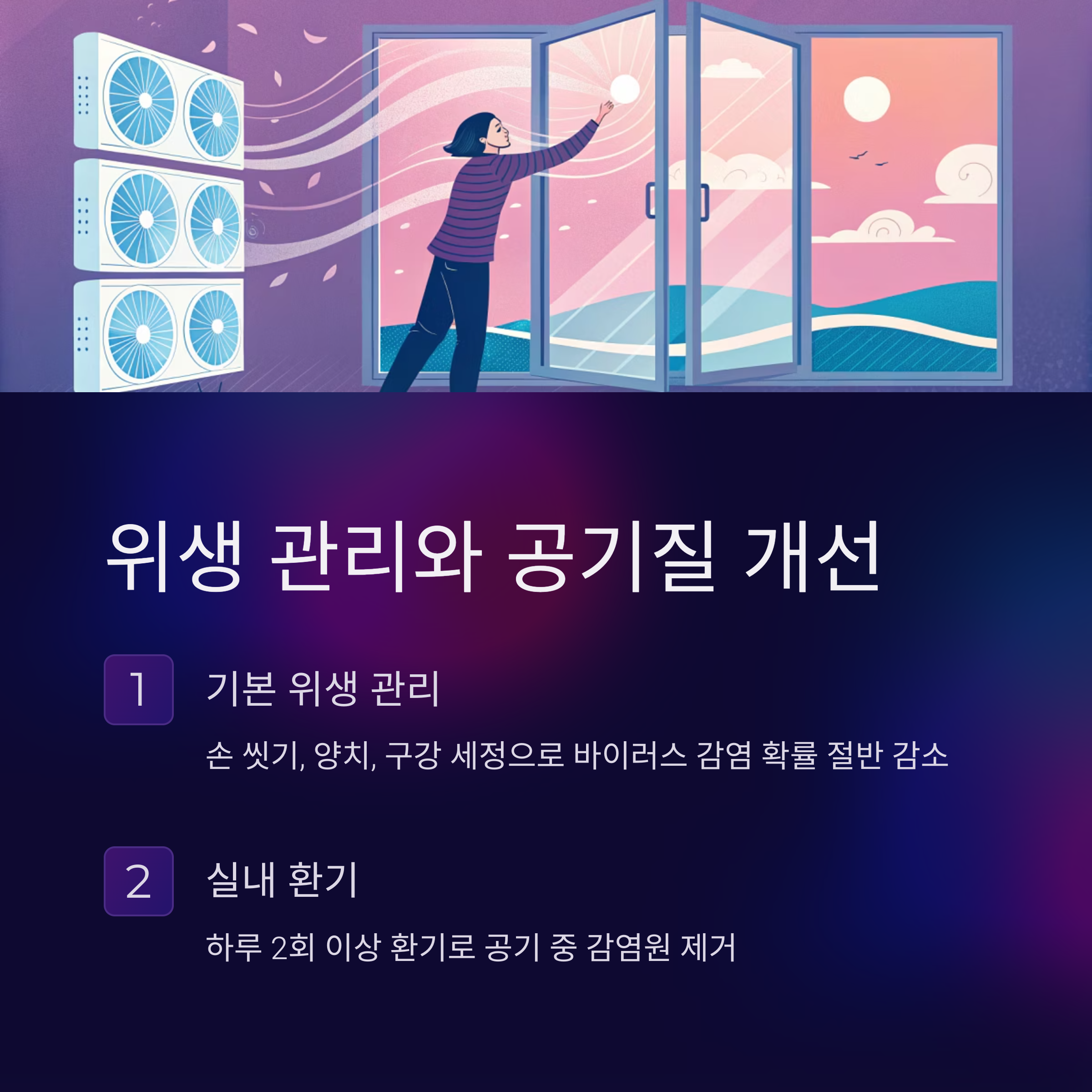 위생 관리와 공기질 개선은 실내 감염 예방의 기본입니다
