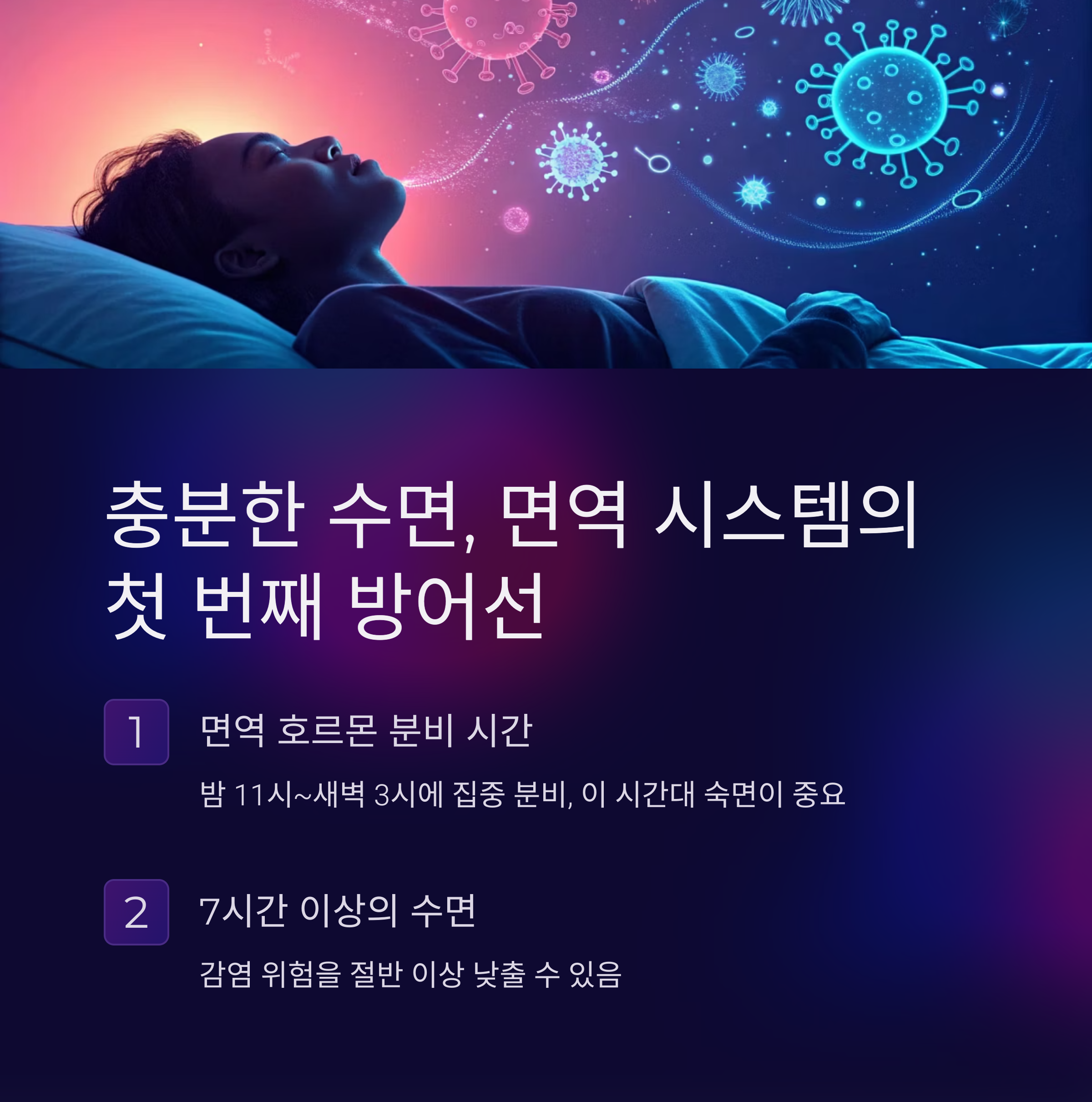 이 시간에 숙면을 취해야 바이러스에 대한 저항력이 올라갑니다.