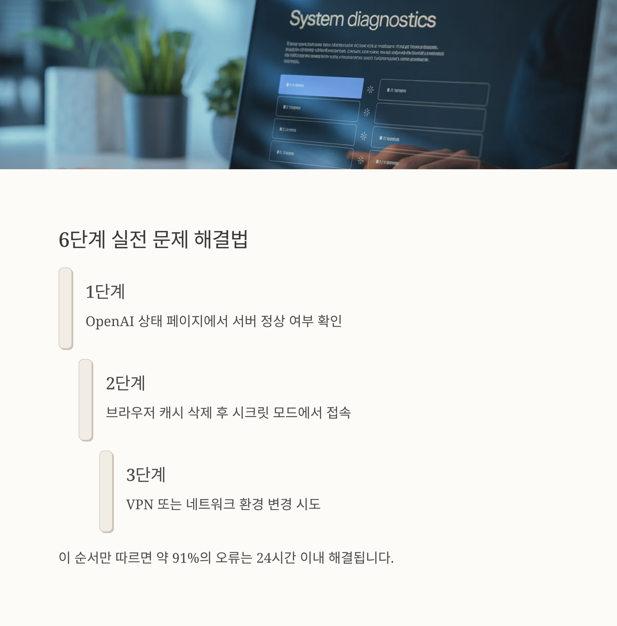 | 1단계 | OpenAI 상태 페이지에서 서버 정상 여부 확인 |