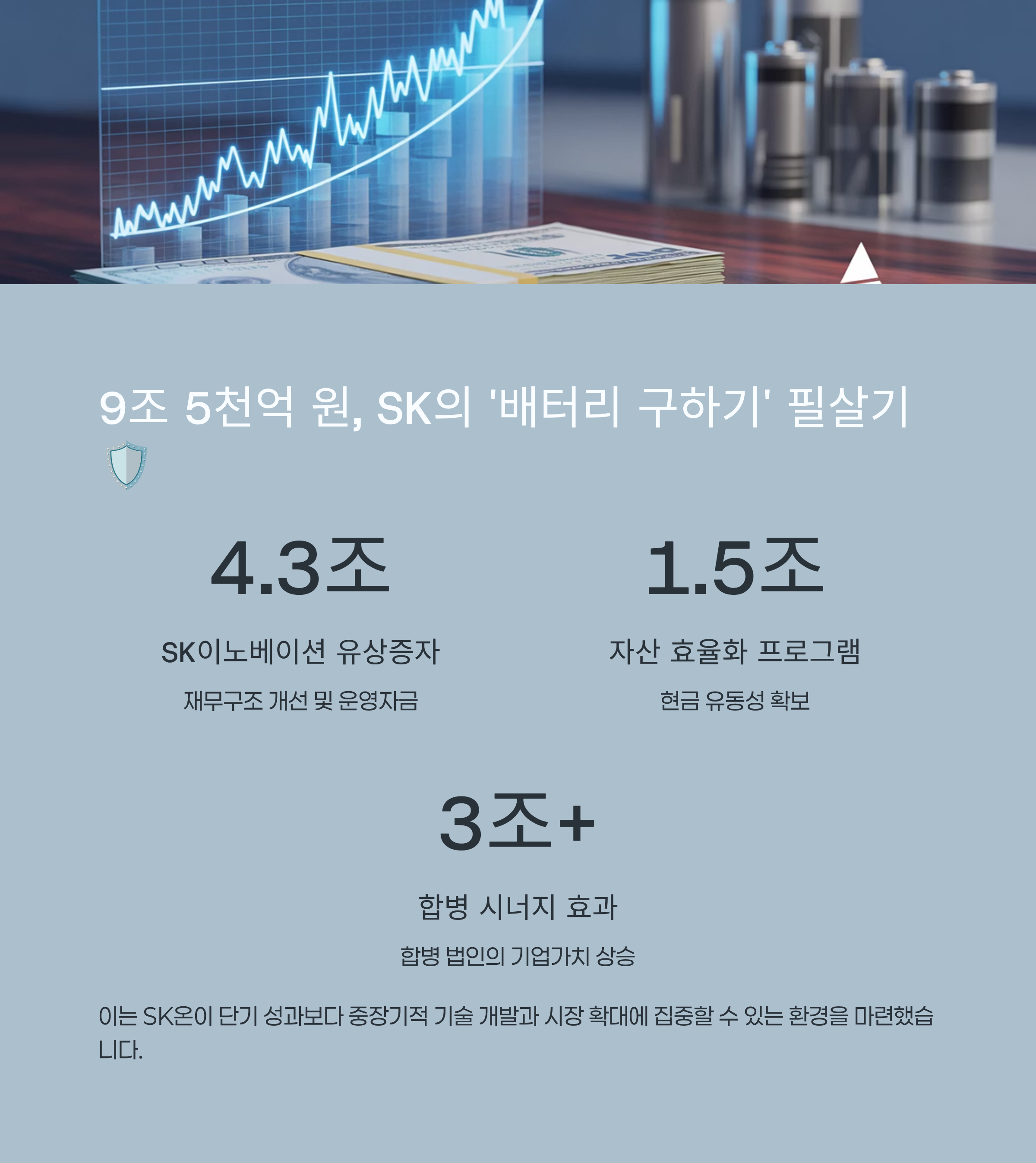 9조 5천억 원, SK의 '배터리 구하기' 필살기 🛡️